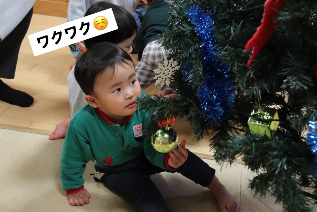 12月1日(月)、道ぐみさん(5歳児)が飾りつけをしてくれたクリスマスツリーと、園舎全体のイルミネーションの点灯式を行いました。「5,4,3,2,1,点灯!!」とみんなの元気な声とともにクリスマスツリーが輝くと「すごい!」「きれい」などと子どもたち同士の会話が弾んでいました。園舎全体のイルミネーションは、2月3日(立春)まで毎日点灯します。親子で楽しんでくださいね。
