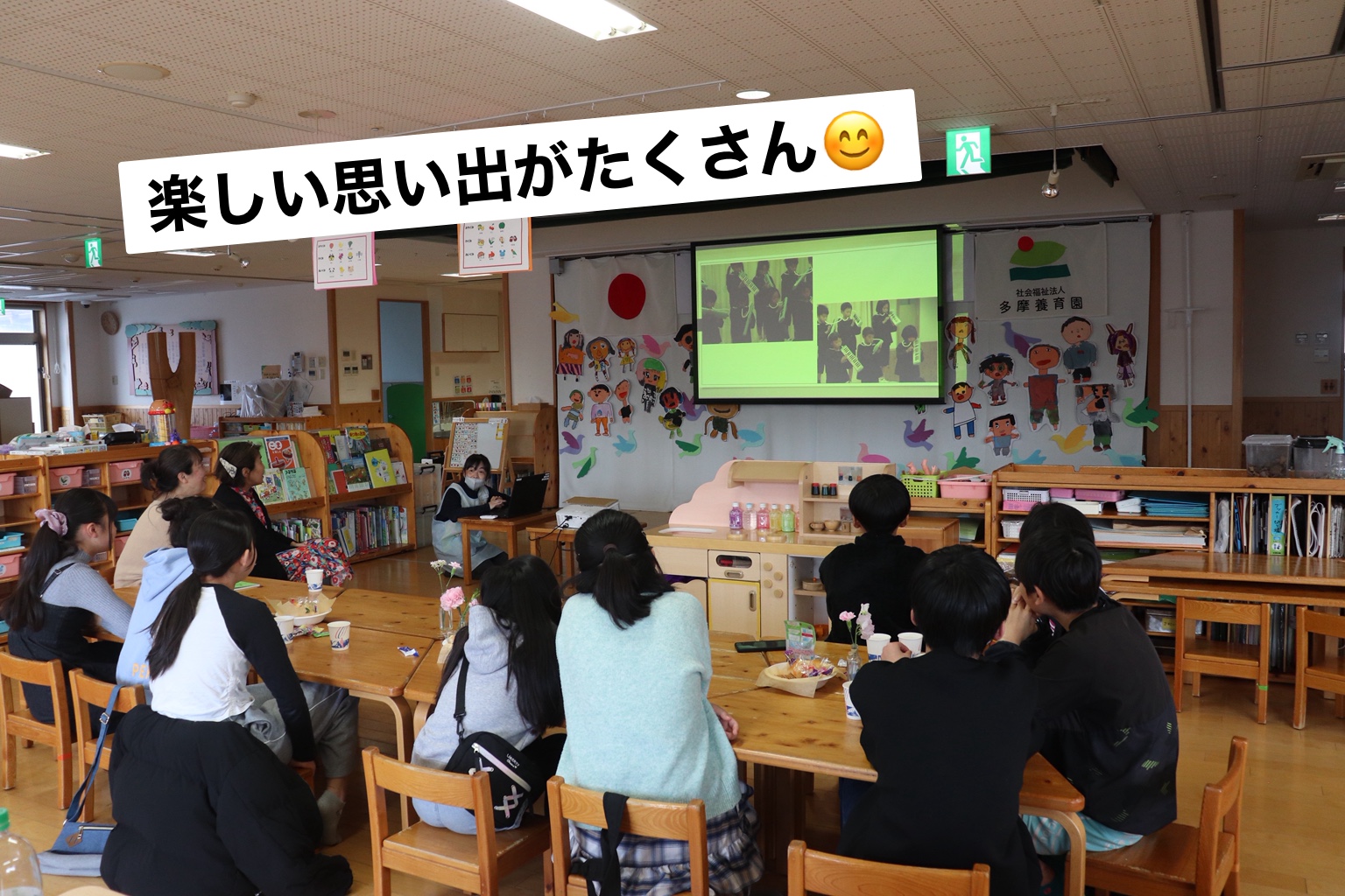 本日は、かつて光明第二保育園に通っていた小学6年生のみなさま、中学3年生のみなさまをお招きし、同窓会を開催しました。懐かしい映像やアルバムをみんなで見たり、担任だった先生と思い出話に花を咲かせたり、とても楽しい会となりました。参加したみなさま、ありがとうございました。またいつでも保育園に遊びに来てくださいね。