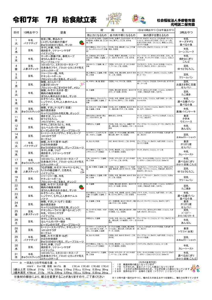 R7年度7月 配布献立表・アレ除去